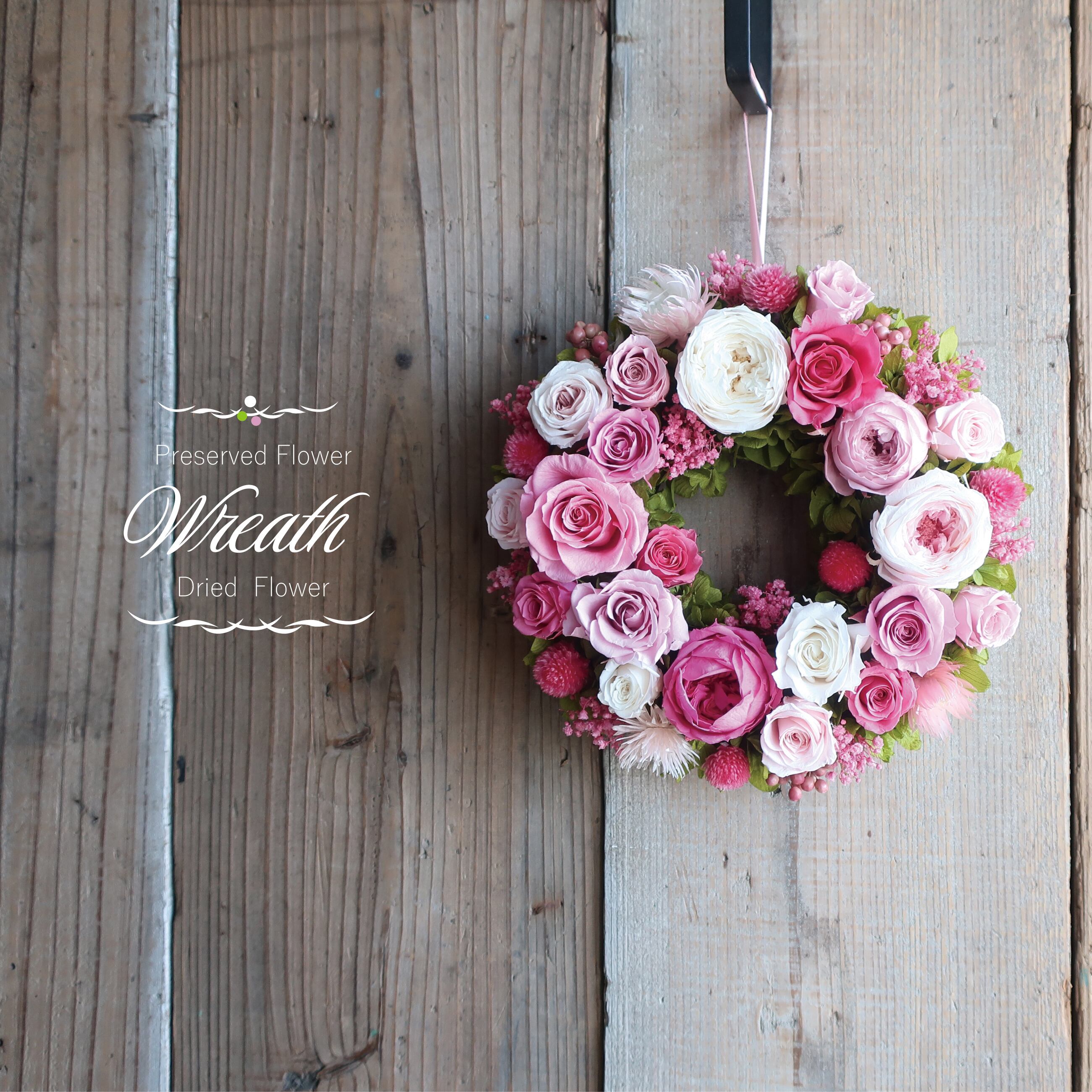 ローズたっぷりフラワーリース ✿ ドライ・プリザーブドフラワー BOX付き Gem
