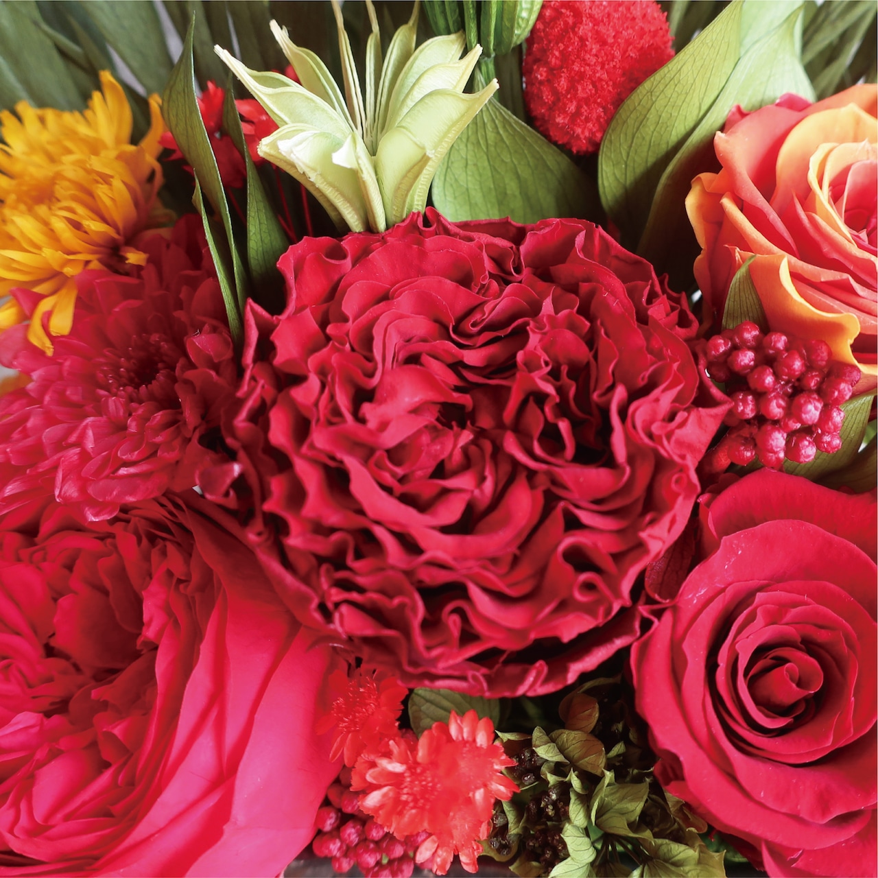 プリザーブドフラワー・ドライフラワーを使用しております。