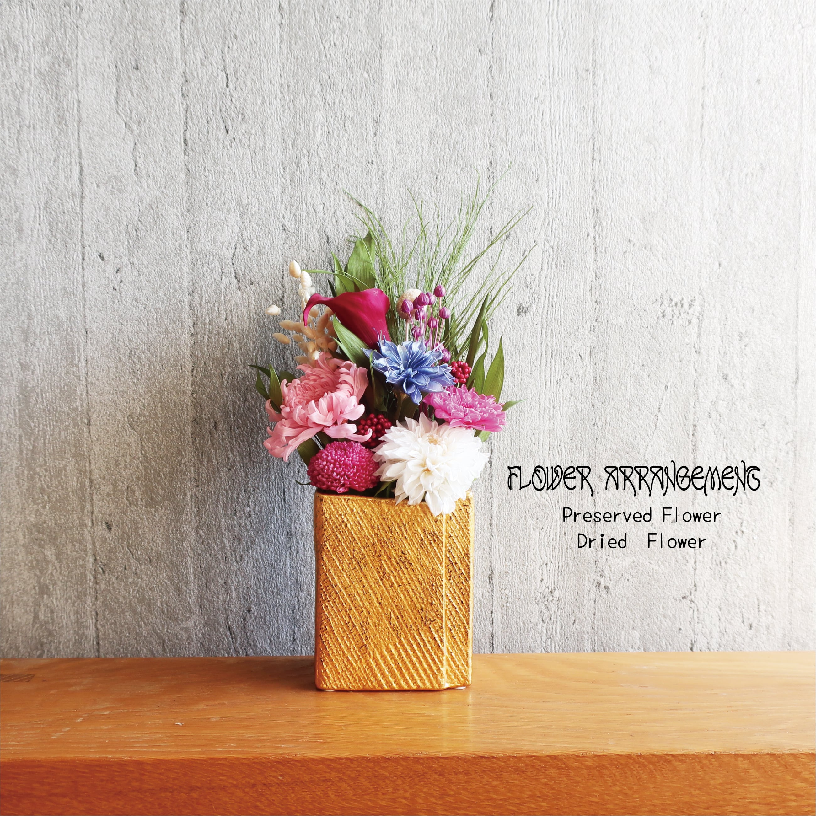 プリザーブドフラワー・ドライフラワーを使用しております。
