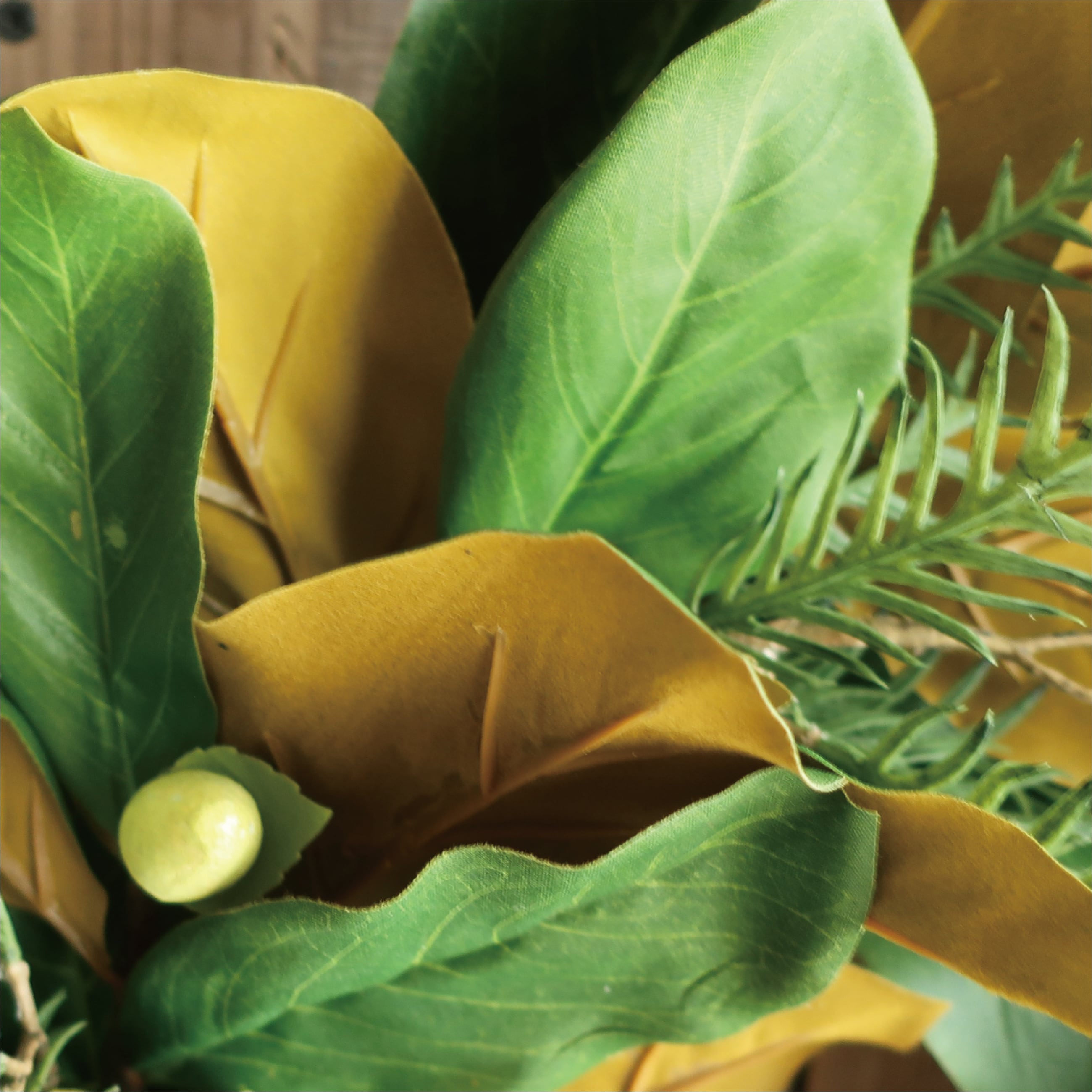 マグノリアのグリーン・ブラウンカラーの大きなリーフをお楽しみください。
