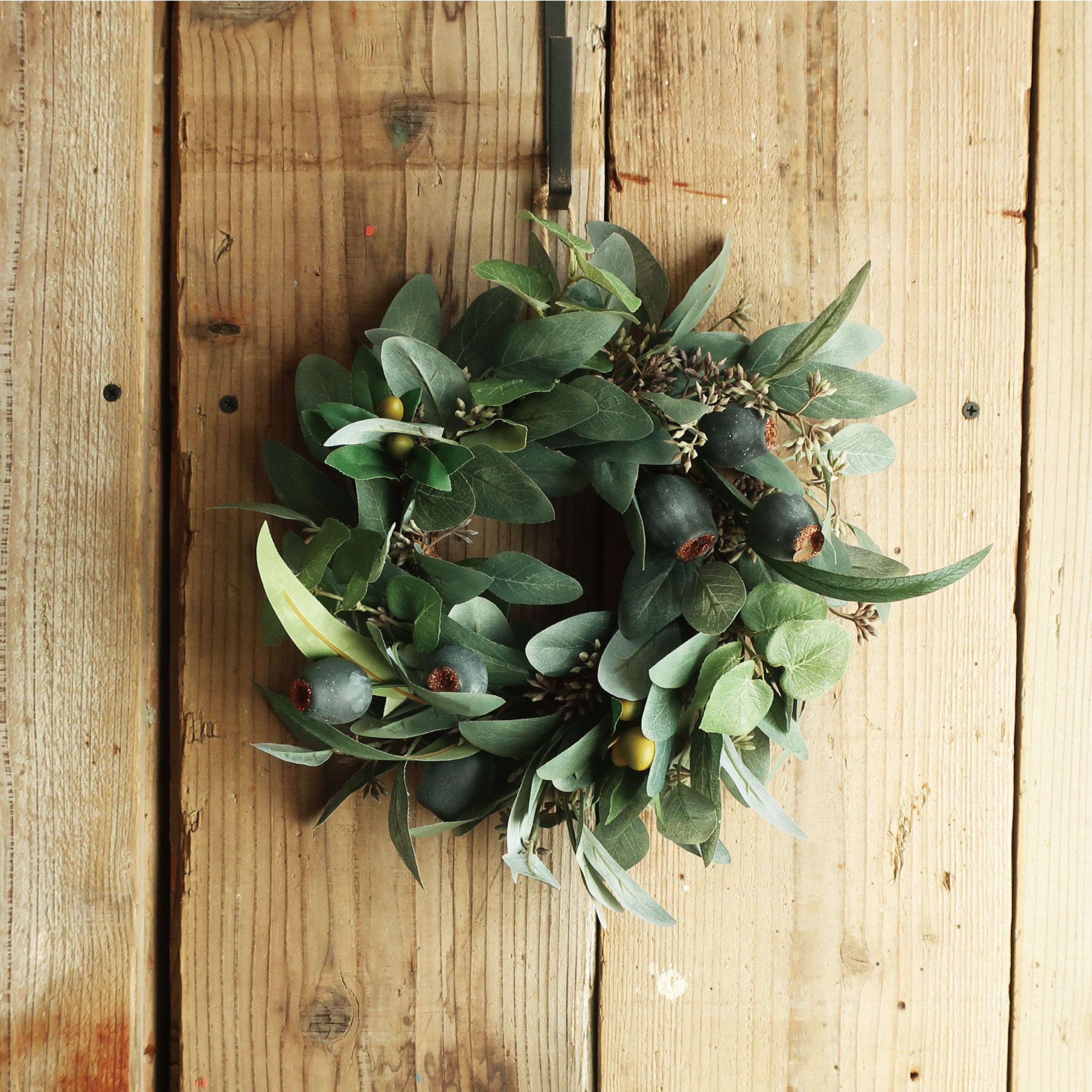 ユーカリ・オリーブのΦ約31cmのグリーンリースです。