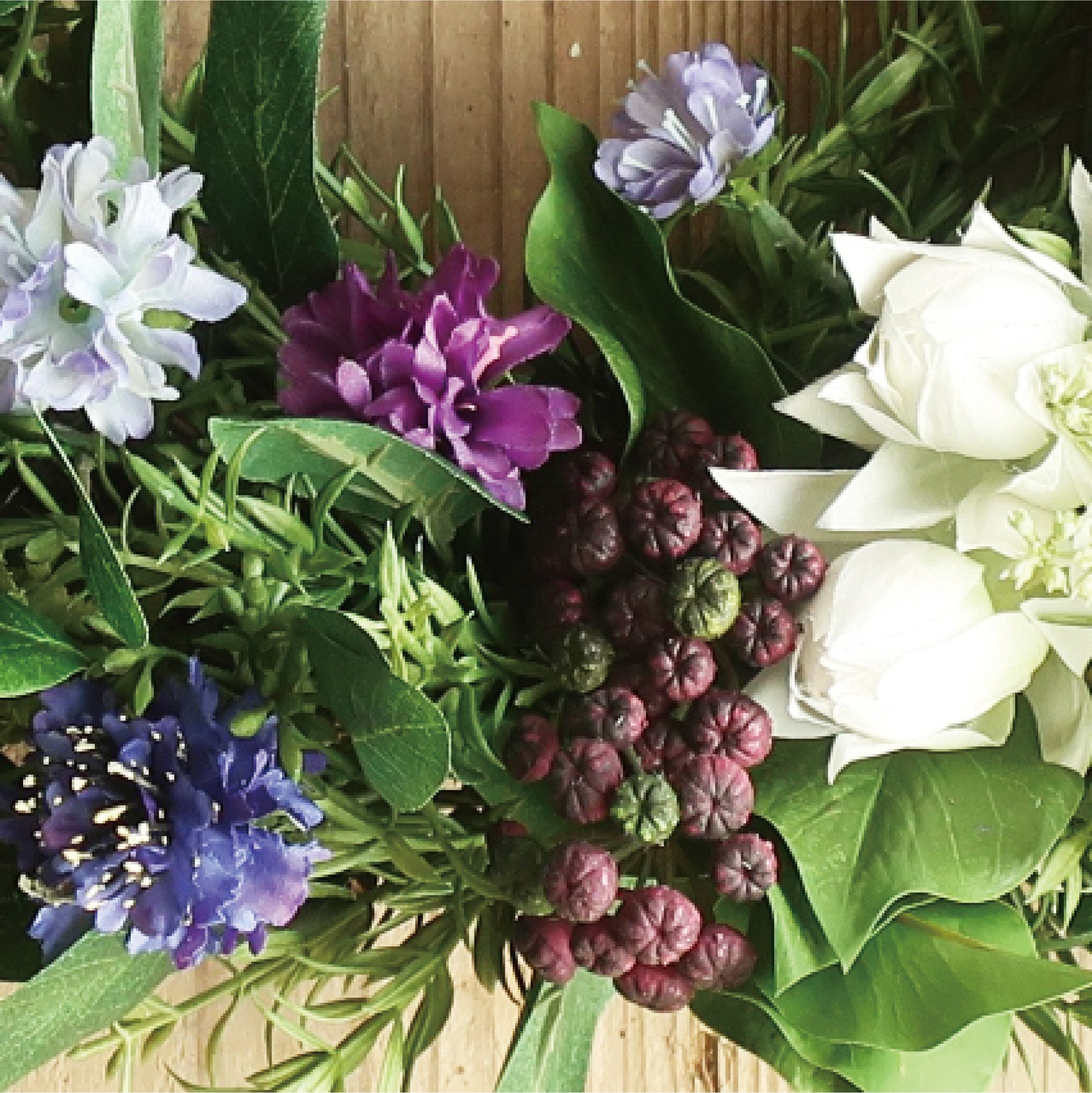 セルリア・コーンフラワー・エリンジウム・ヘデラベリー・ユーカリ等