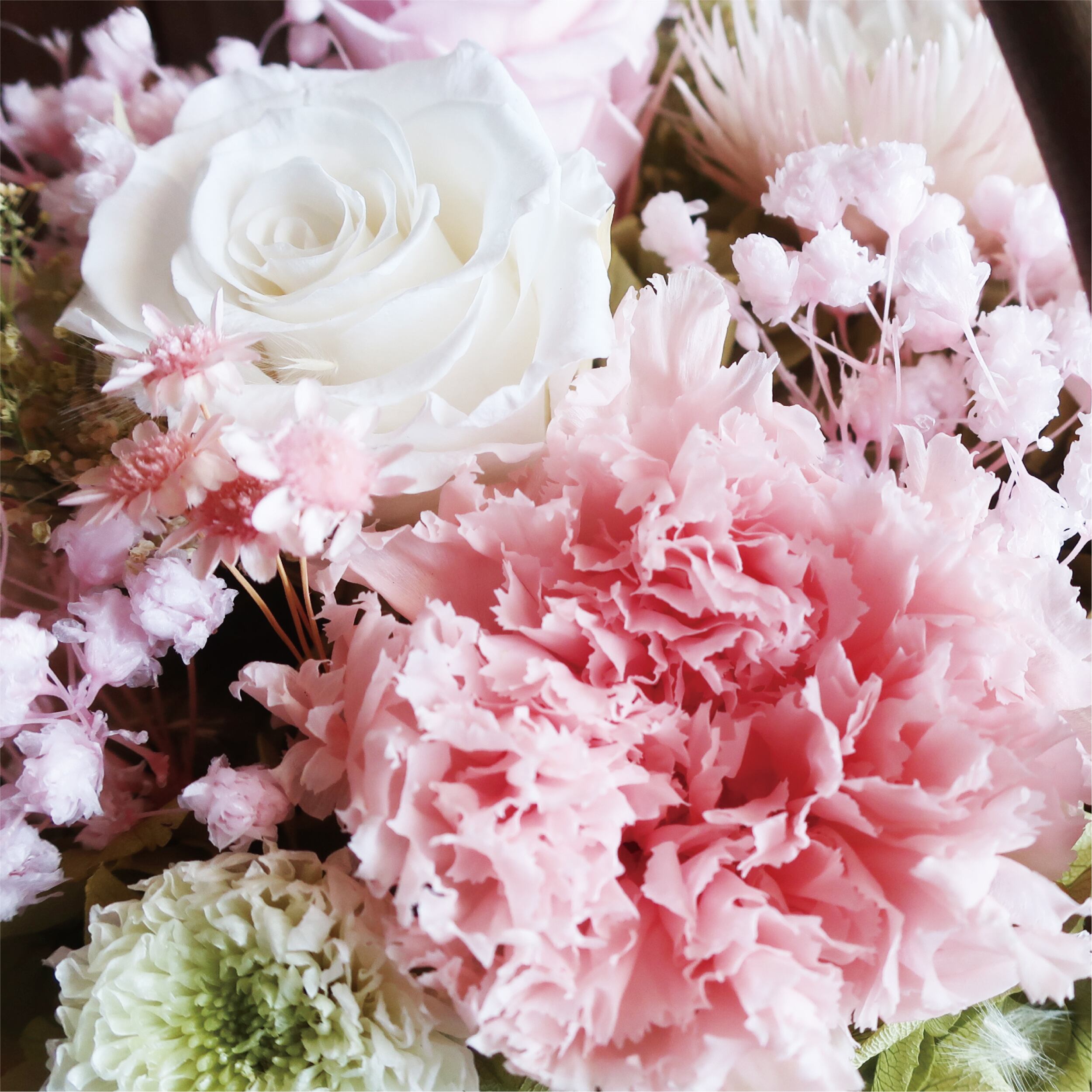 プリザーブドフラワー・ドライフラワーを使用しております。