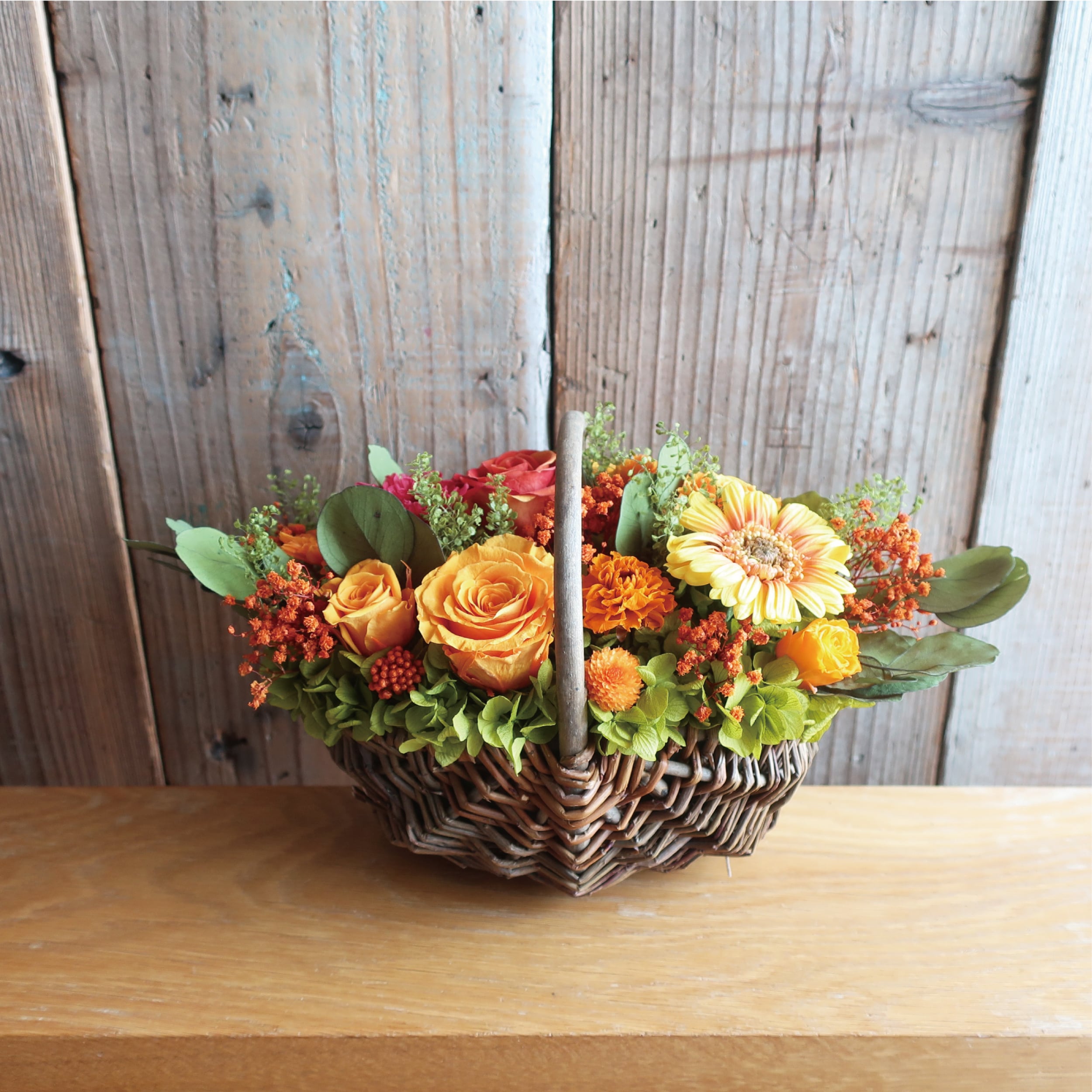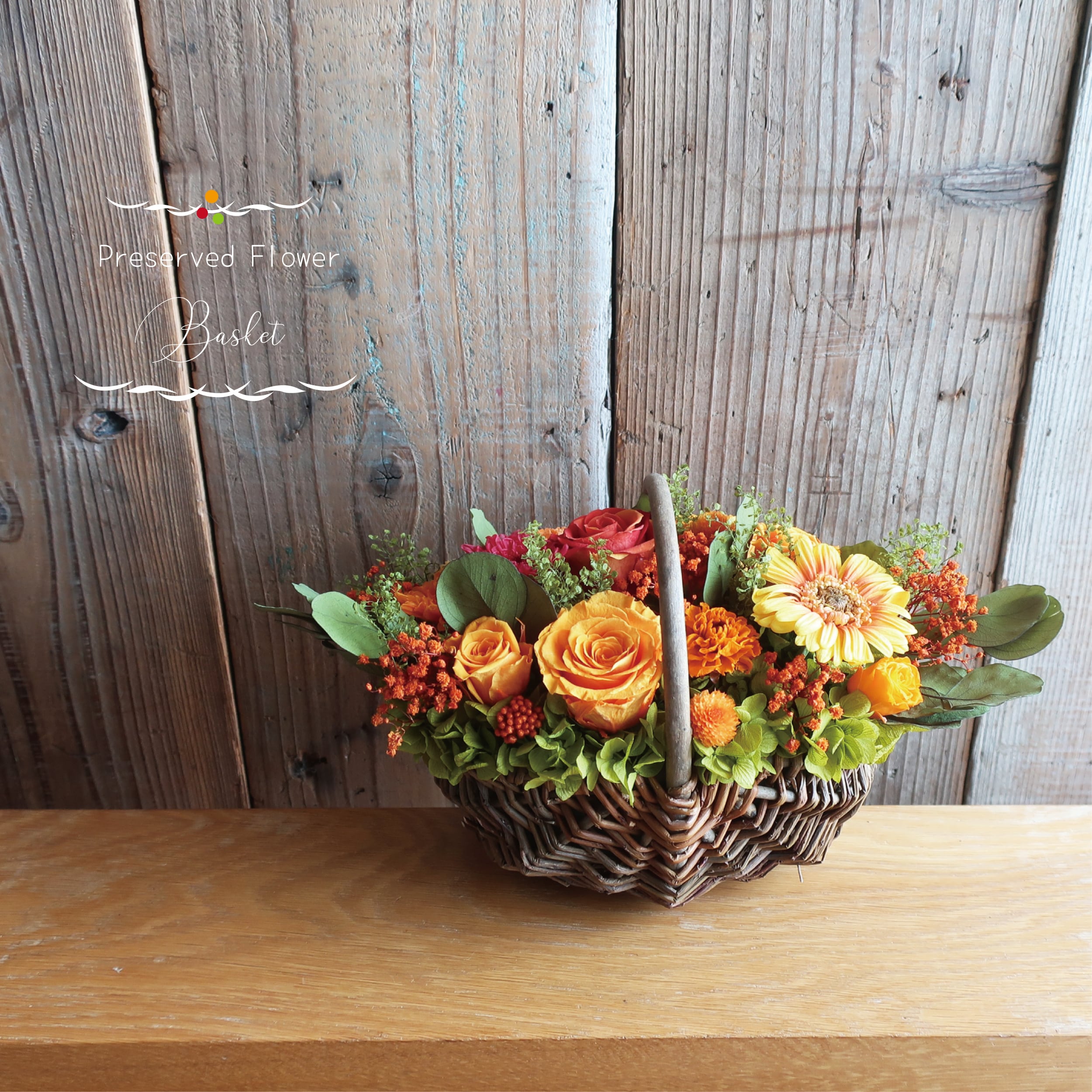 母の日ギフト フラワーバスケット ✿ オレンジ プリザーブドフラワー Fruta