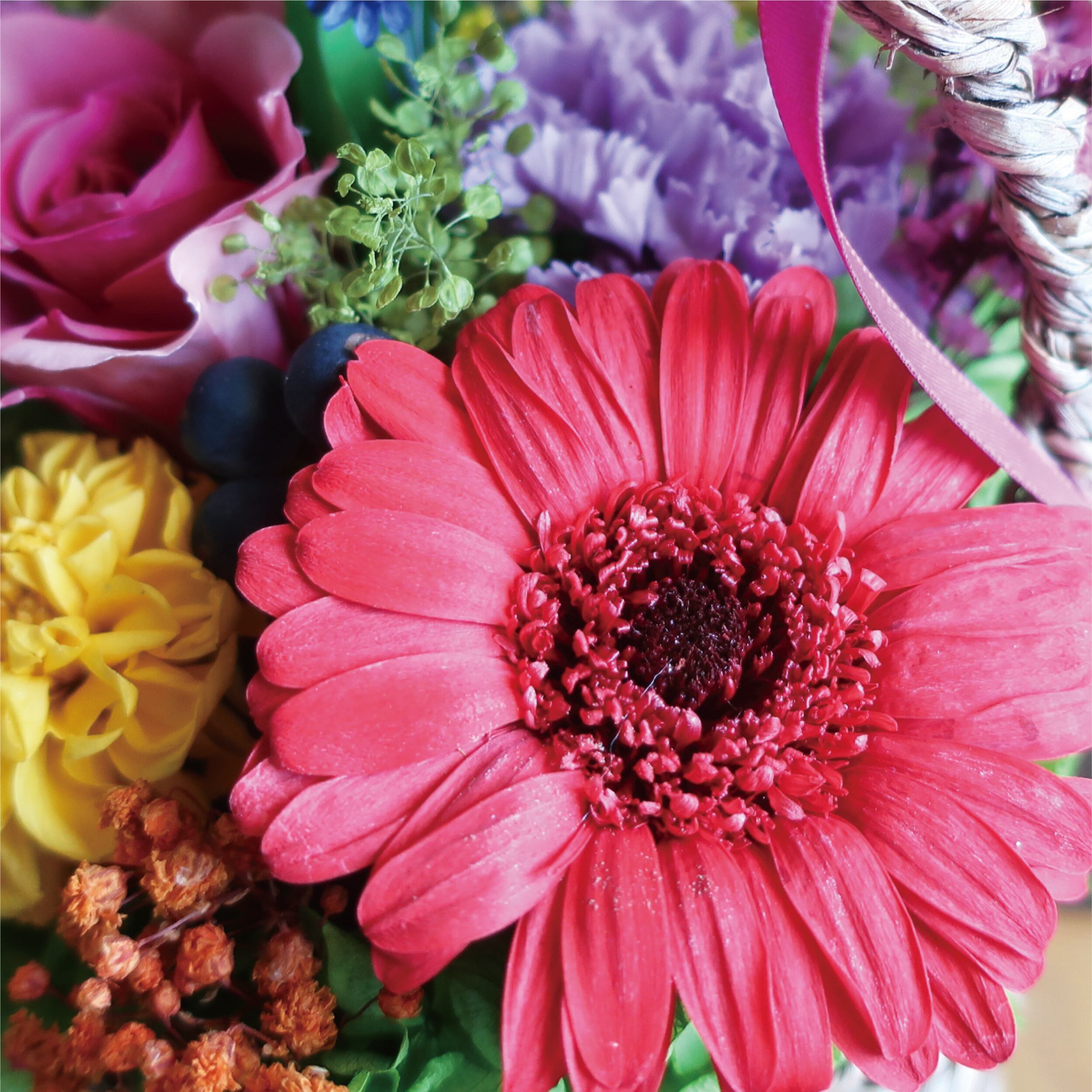 母の日ギフト ガーベラ フラワーバスケット ✿ プリザーブドフラワー&ドライフラワー Amie