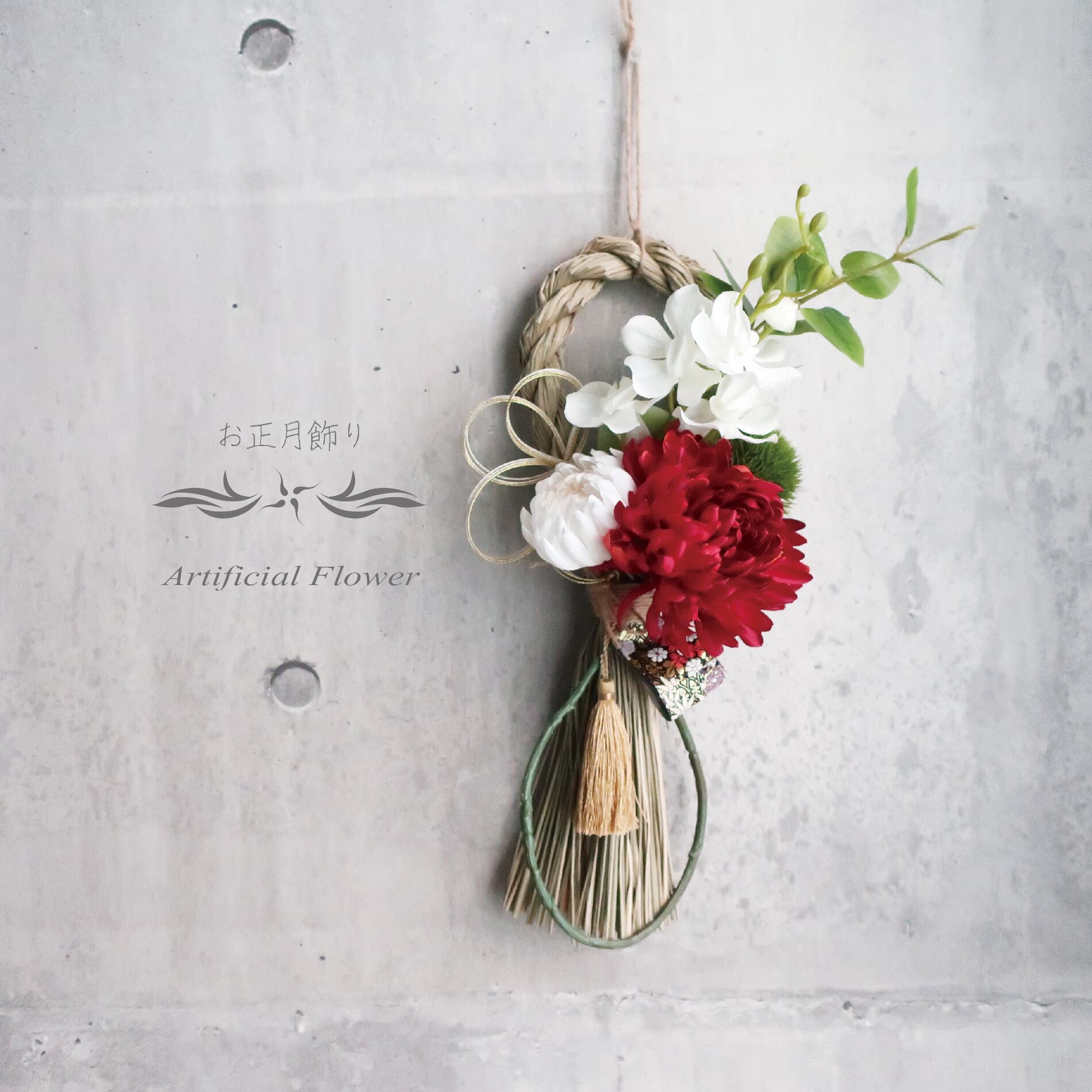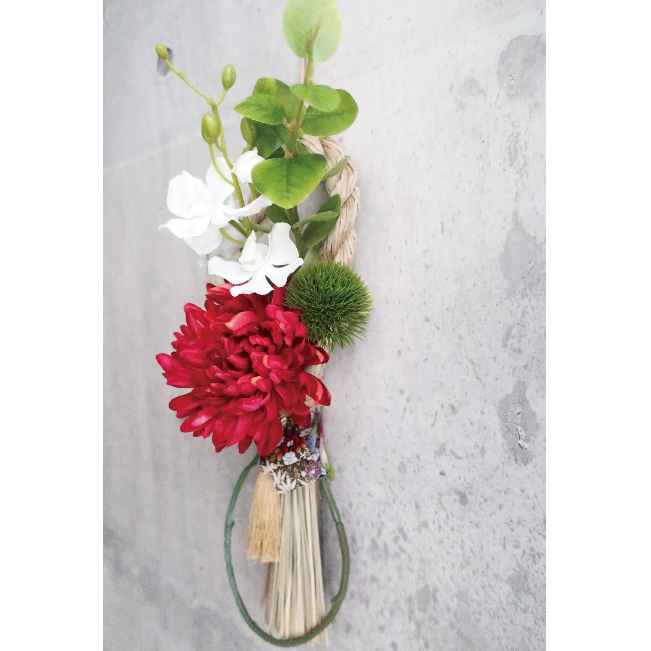 お正月しめ縄飾り2026 ✿ 紅白 アーティフィシャルフラワー Mio